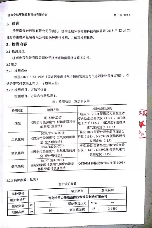 2019年1月环保检测报告