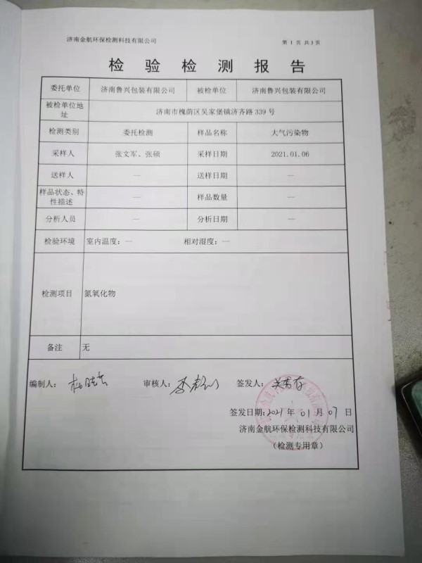 2021年1月环保检测报告