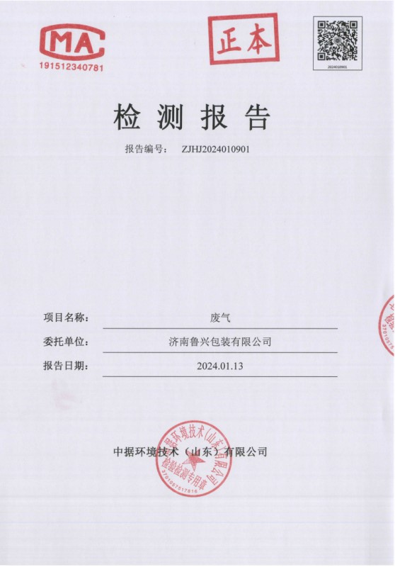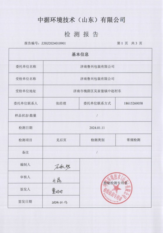 2024年1月鲁兴包装检测报告