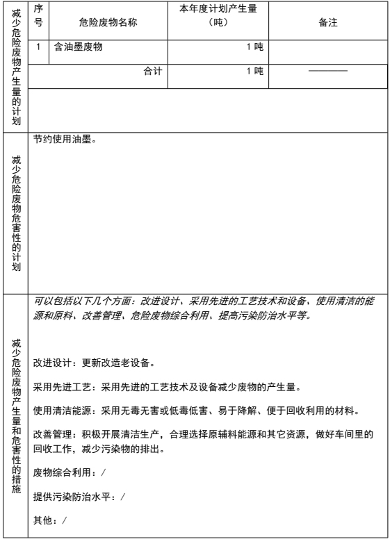 表 4 危险废物减量化计划和措施