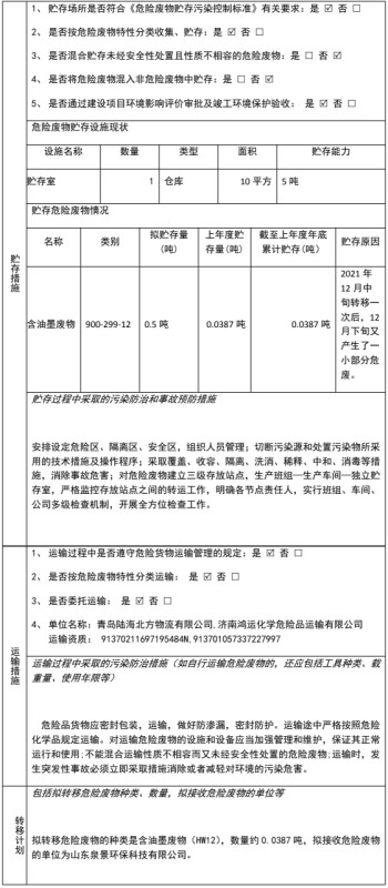 表 5 危险废物转移情况