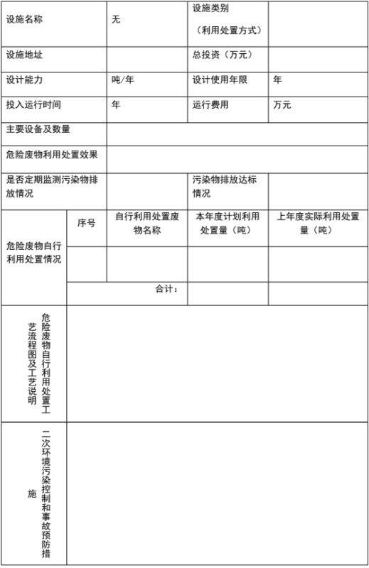 表 6 危险废物自行利用/处置措施(可另增页)