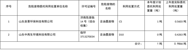 表 7 危险废物委托利用/处置措施(可另增页)