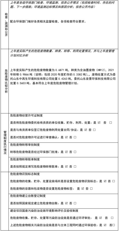 表 8 环境监测情况