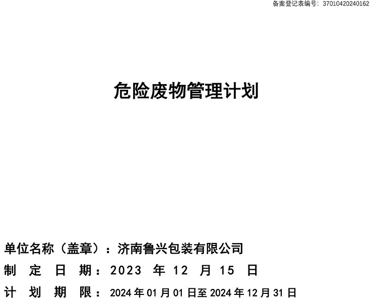 危险废物管理计划