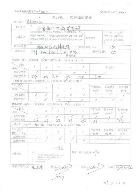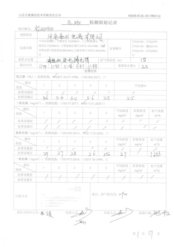 HJ2504110济南鲁兴包装有限公司记录